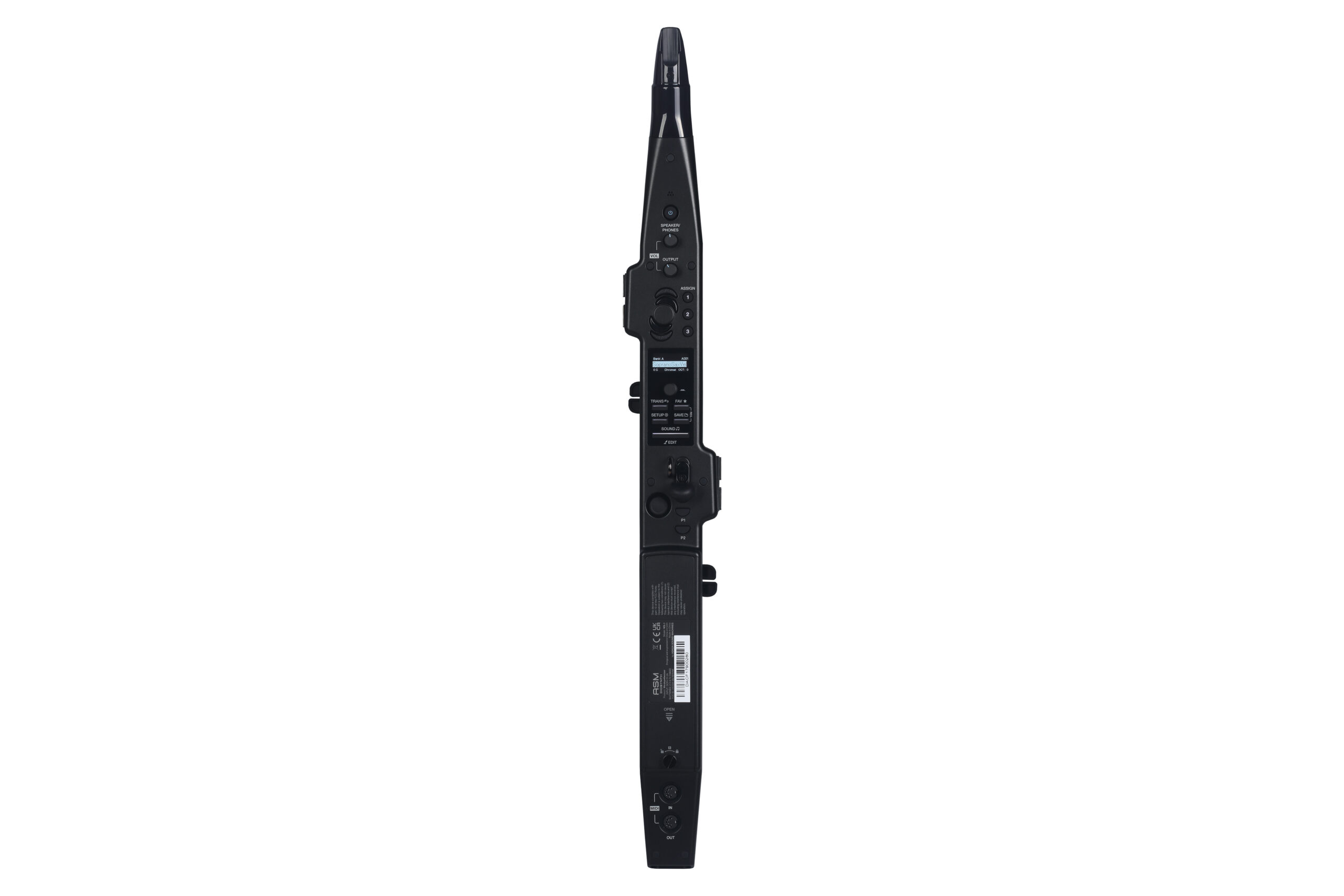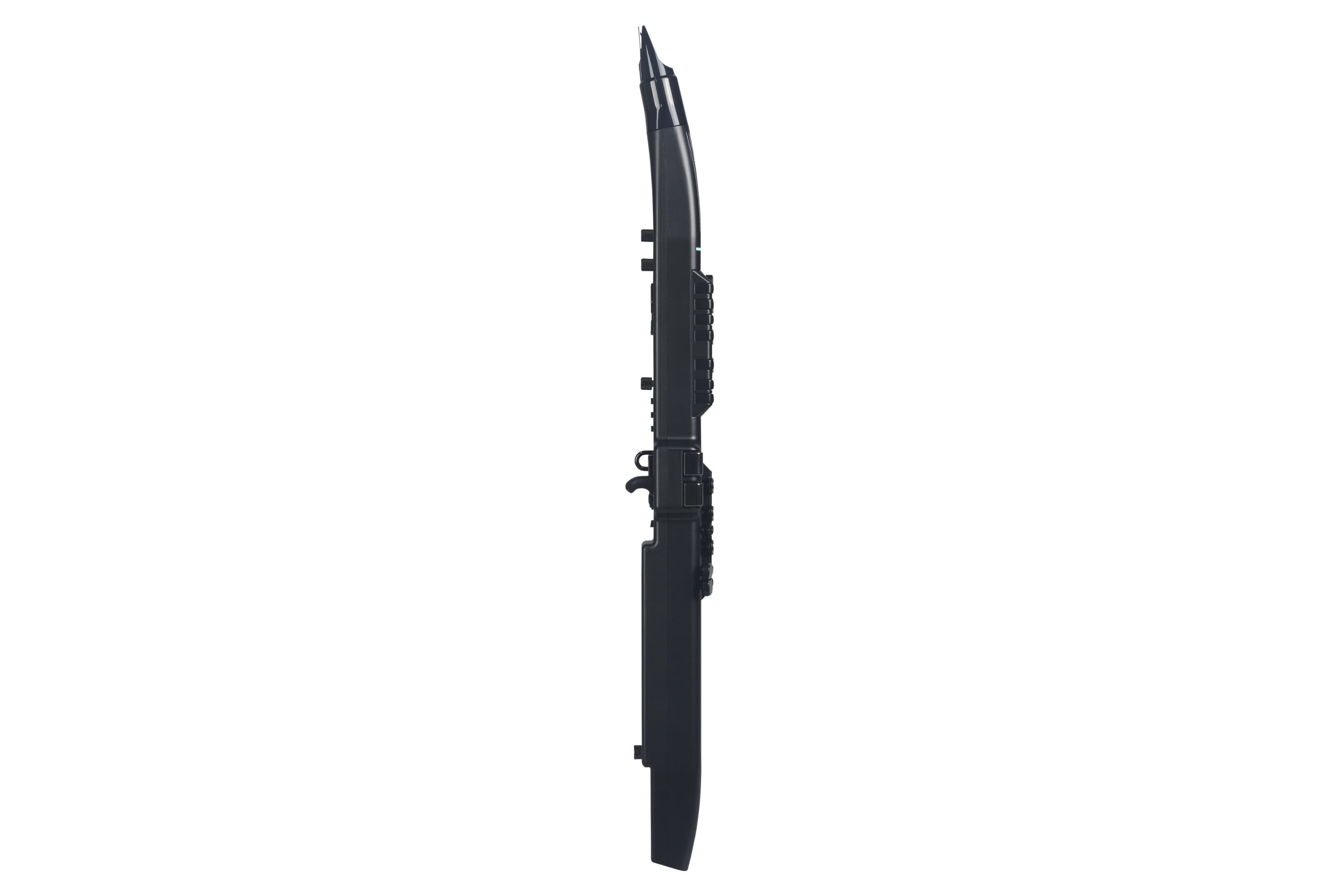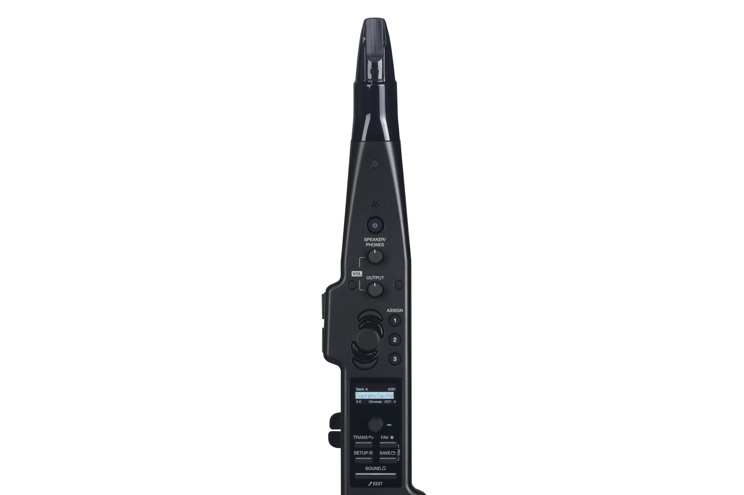 • Bedienelemente: Atemkraftsensor, Biss-Sensor, 4 x Oktavtasten (9-Oktaven-Bereich), X/Y-Joystick, Bedienfeld mit klickbarem Encoder und Modustasten (Transpose, Favoriten, Setup, Save, Sound/Edit), programmierbare Tasten (3), drucksensitive Tasten (2), separate Lautstärkeregler (Lautsprecher/Kopfhörer und Ausgang), Gyroskop-Sensor