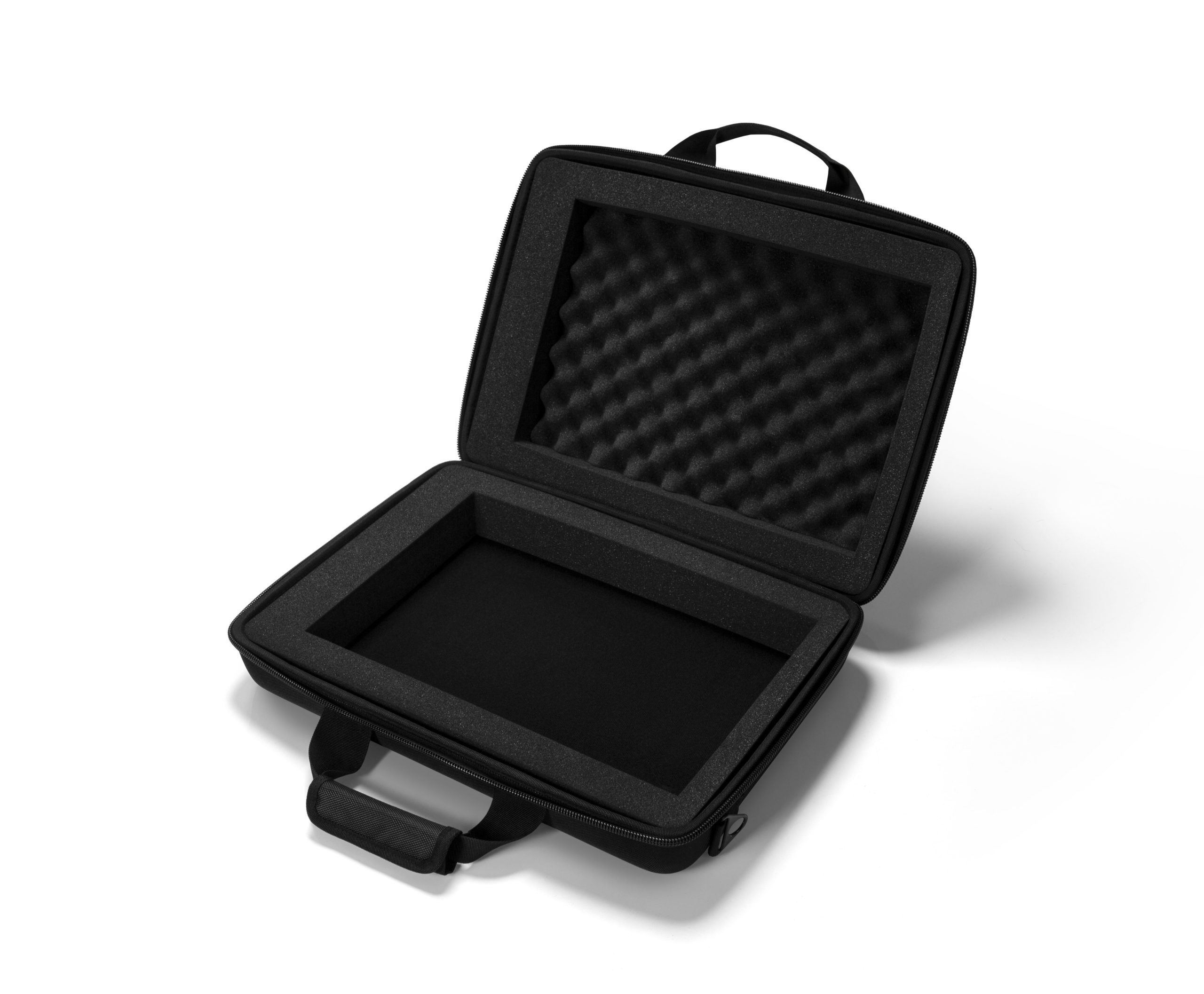 - Materialien: EVA Durashock Hartschaum; schwarzes Polyester; schwarzes Fleece-Futter