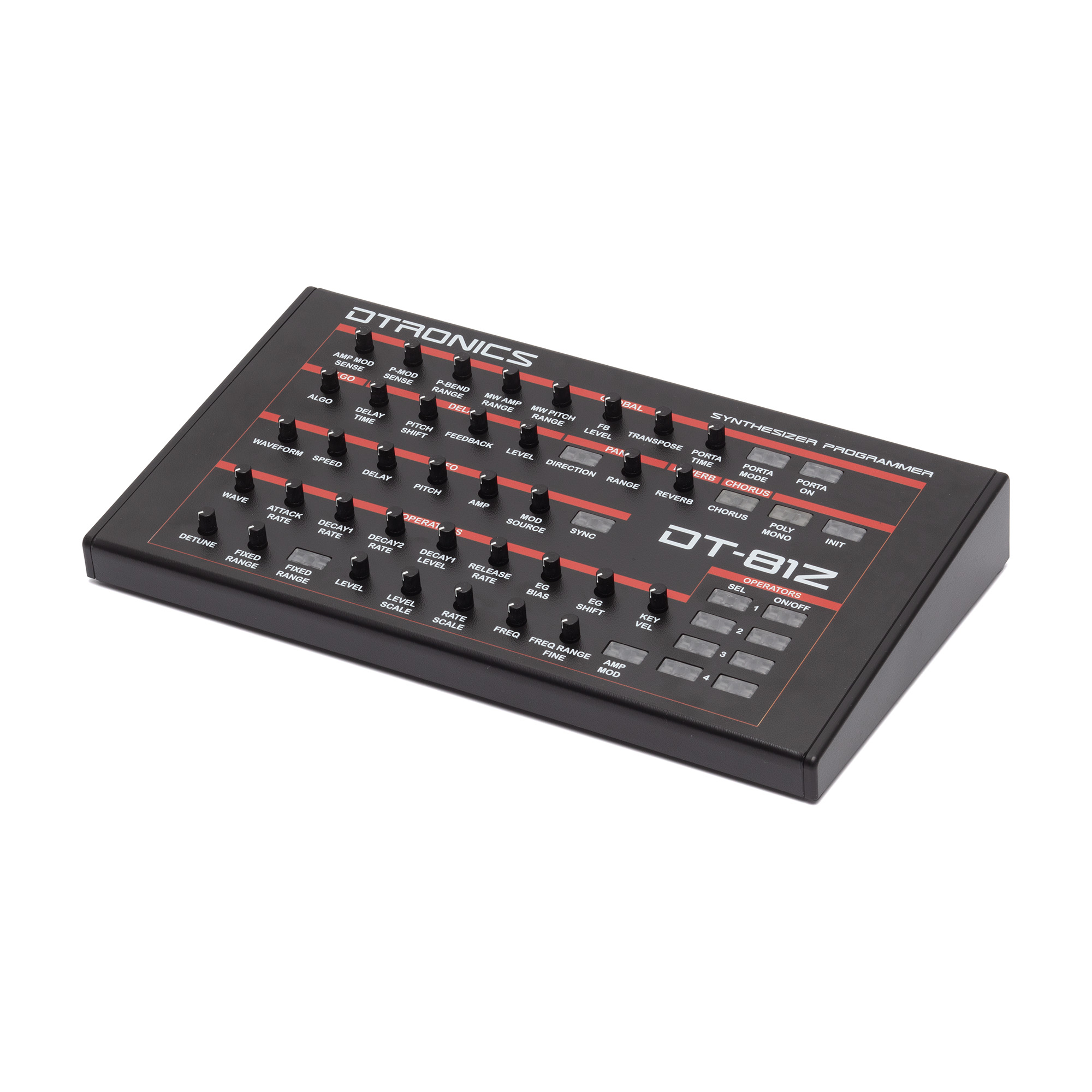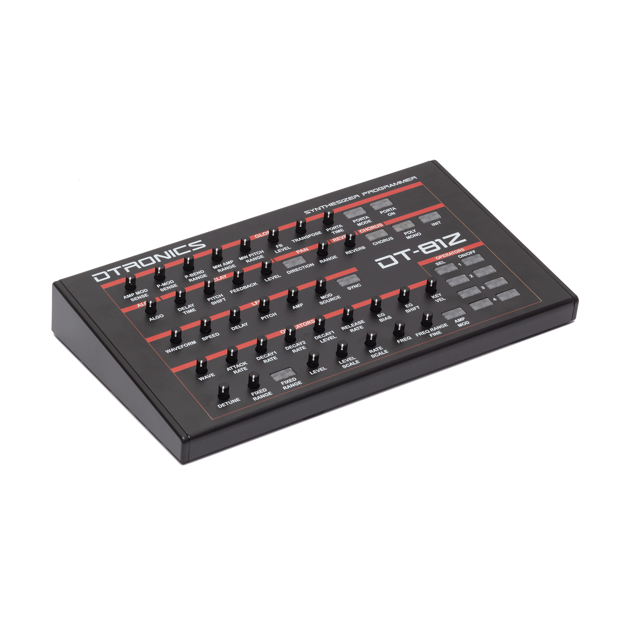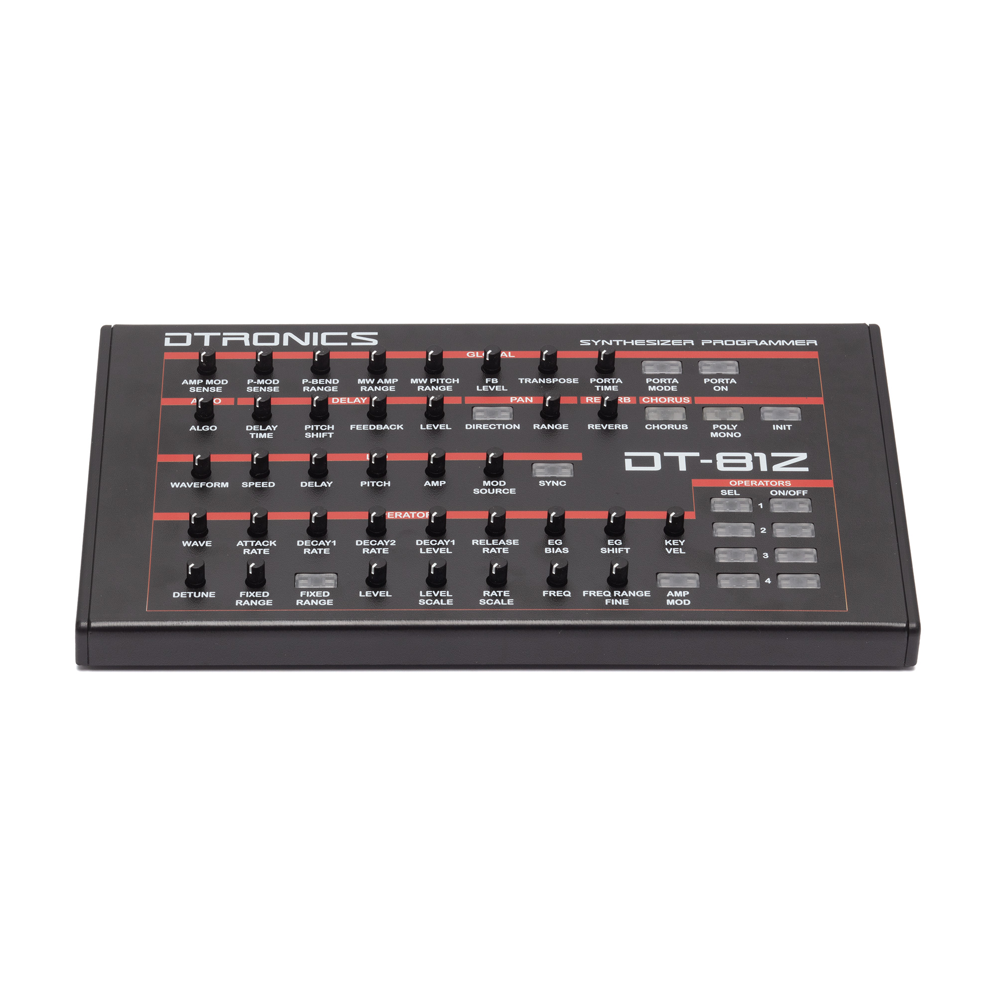 Der DT-81Z setzt genau hier an. Der kompakte und zugleich robuste Desktop-Controller erweitert den Synthesizer um 37 Trimmpotentiometer und 17 hintergrundbeleuchtete Schalter und ermöglicht damit direkten Zugriff auf einen Großteil der TX81Z-Parameter. So erhält dieser Klassiker neues kreatives Potenzial. Darüber hinaus ist der DT-81Z kompatibel mit den Keyboards DX100, DX21 und DX27. Die Verbindung erfolgt über das mitgelieferte MIDI-Kabel, die Stromversorgung über USB-C (Kabel ebenfalls enthalten).