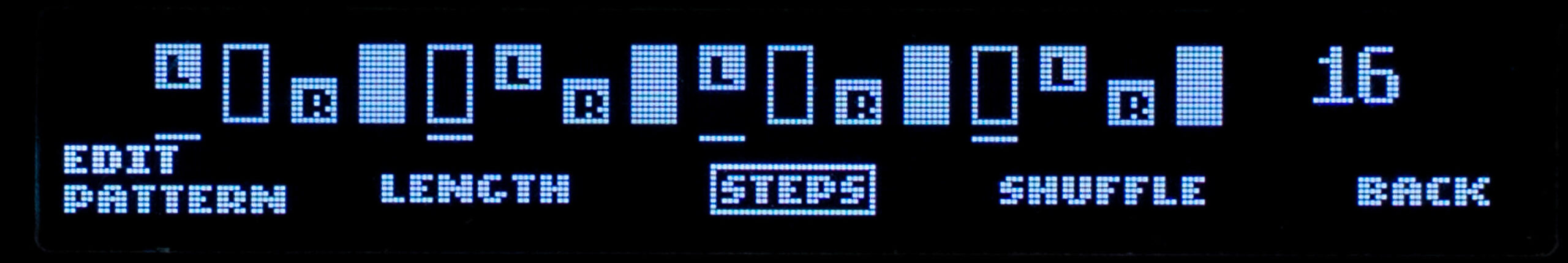 - Pattern-Modus: Anzahl der Steps, globale Step-Längen, Shuffle