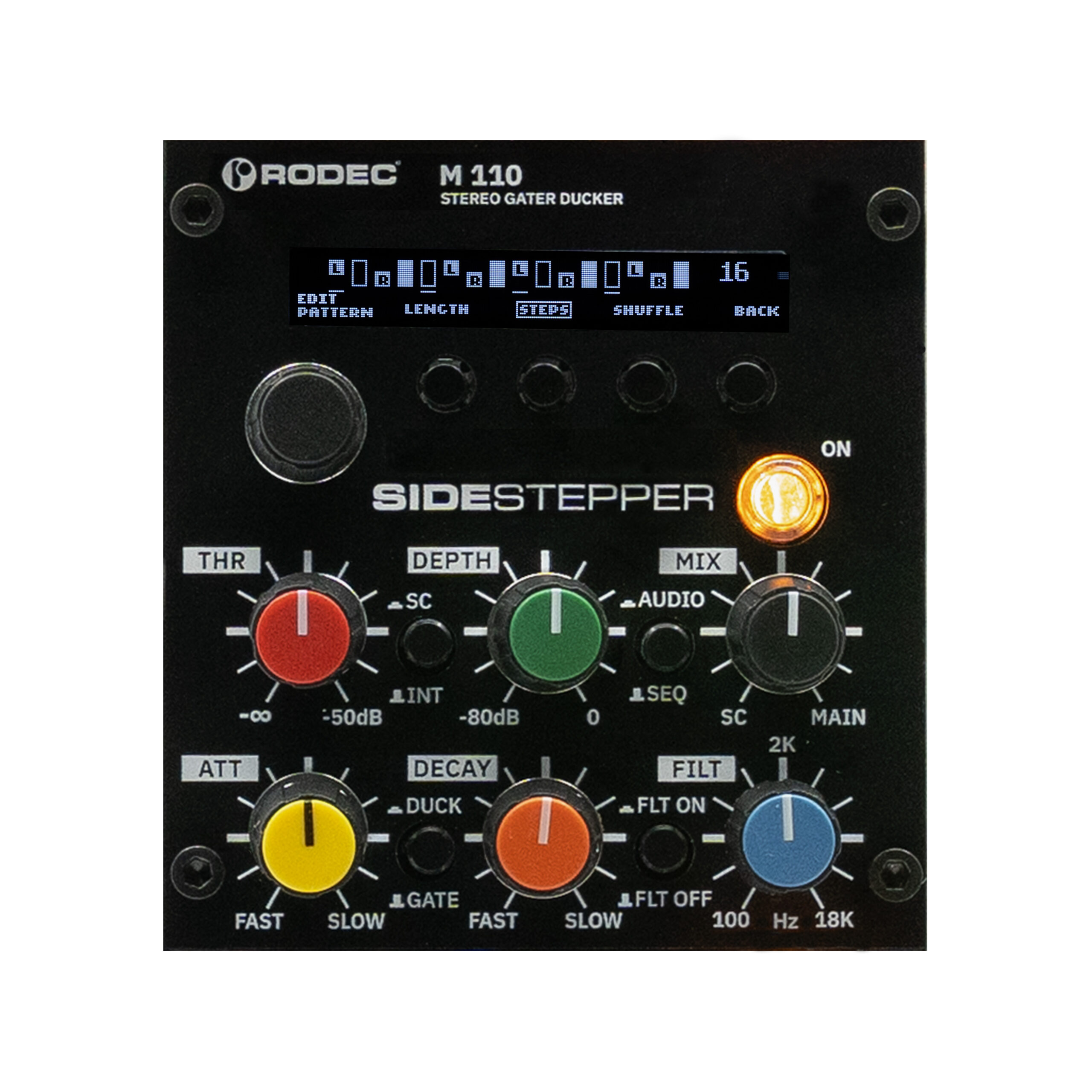 SideStepper ist ein leistungsstarker analoger Stereo-Gater/Ducker mit integriertem Step- Sequencer. Das Modul kombiniert legendär präzises, messerscharfes analoges Gating mit pumpendem Ducking und eröffnet durch individuell programmierbare stereophone Sequenz-Patterns völlig neue rhythmische Möglichkeiten. So entstehen dynamische Grooves, komplexe Bewegungen im Stereofeld und ein moderner, lebendiger Sound – perfekt für kreative Sounddesign-Experimente.